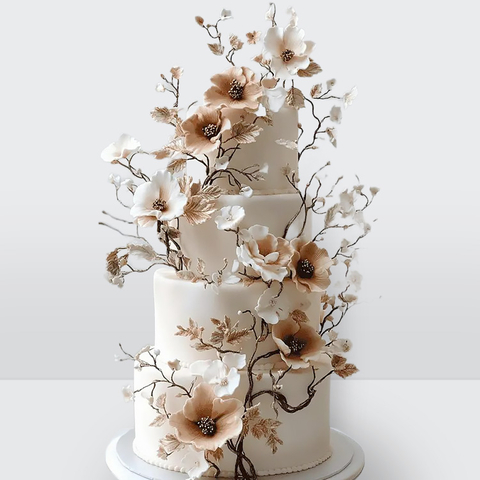 Торт с бежевыми цветами с нежным декором и гармоничной цветовой палитрой № 501