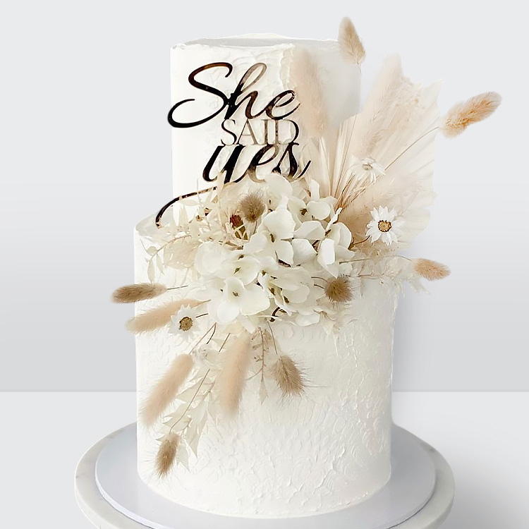 Свадебный торт в стиле Бохо с сухими цветами и надписью с натуральным декором и атмосферой легкости № 518