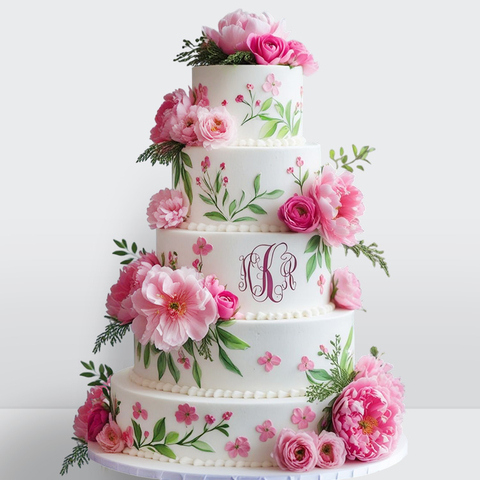 0 Свадебный торт с розовыми пионами 5 ярусов с пышным цветочным декором и нежной романтичной композицией № 522