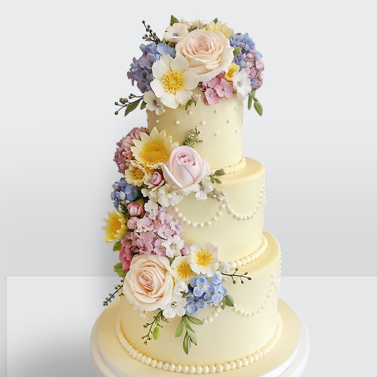 0 Свадебный торт с цветами весенний желтый 3 яруса с ярким декором и солнечной палитрой весны № 523