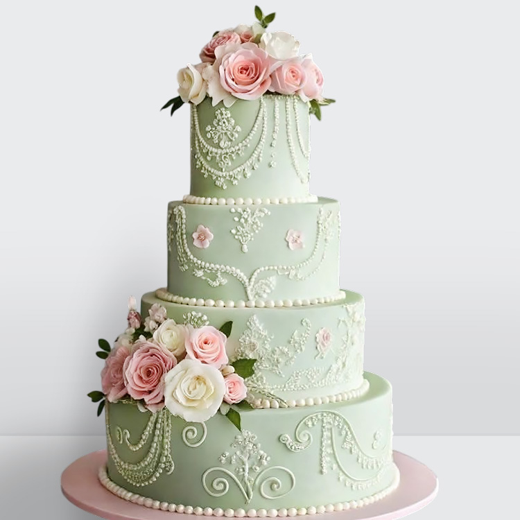 0 Свадебный торт с розовыми розами с узором с утонченным декором и гармоничным орнаментом № 525