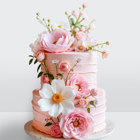 0 Свадебный торт с цветами весенний 2 яруса с цветочным декором и нежной палитрой весны № 533
