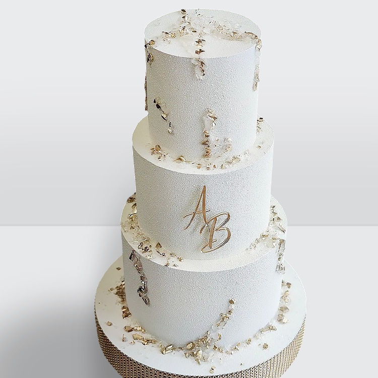 0 Свадебный торт 3 яруса с инициалами и кристаллами № 549