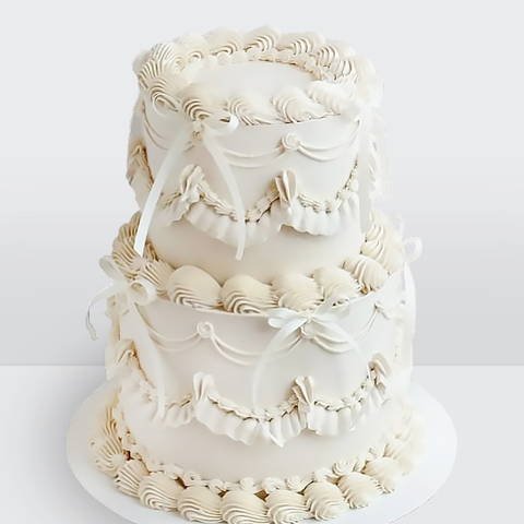 Свадебный торт классический ламбет 2 яруса белый с лентами № 574