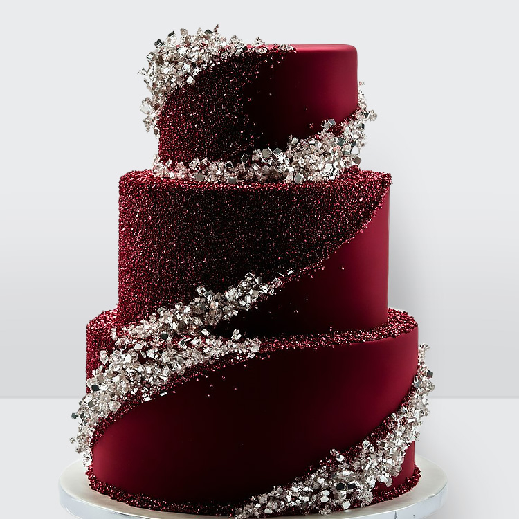 0 Свадебный торт с кристаллами бордового цвета 3 яруса № 582