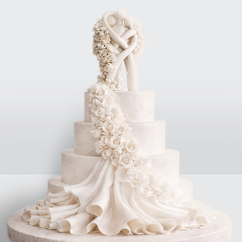0 Свадебный торт 4 яруса с фигурками и драпировкой из цветов № 593