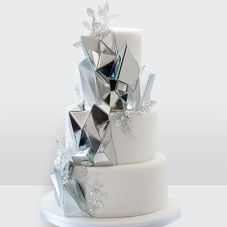0 Свадебный торт дизайнерский кристаллы и зеркальные камни 3 яруса № 610