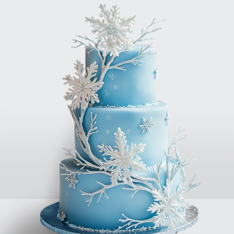 0 Торт голубой зимний со снежинками 3 яруса № 616