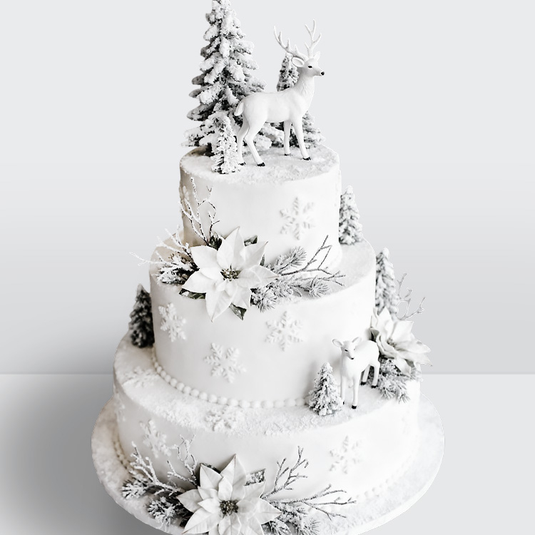 0 Торт зимний со снежинками оленями елочками и цветами № 618