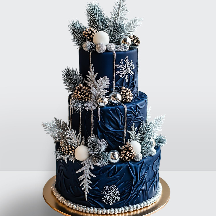 0 Торт зимний синий с шариками шишками и еловыми ветками № 622