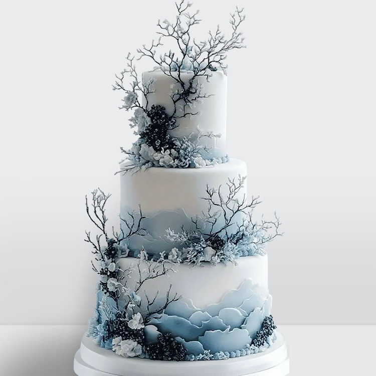 0 Торт зимний со снежинками облаками и веточками № 623