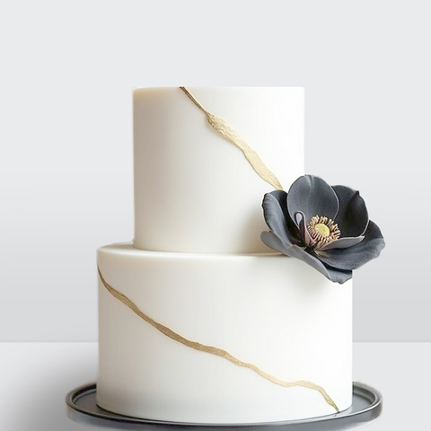 Торт в стиле минимализм 2 яруса с черным цветком и золотом № 636