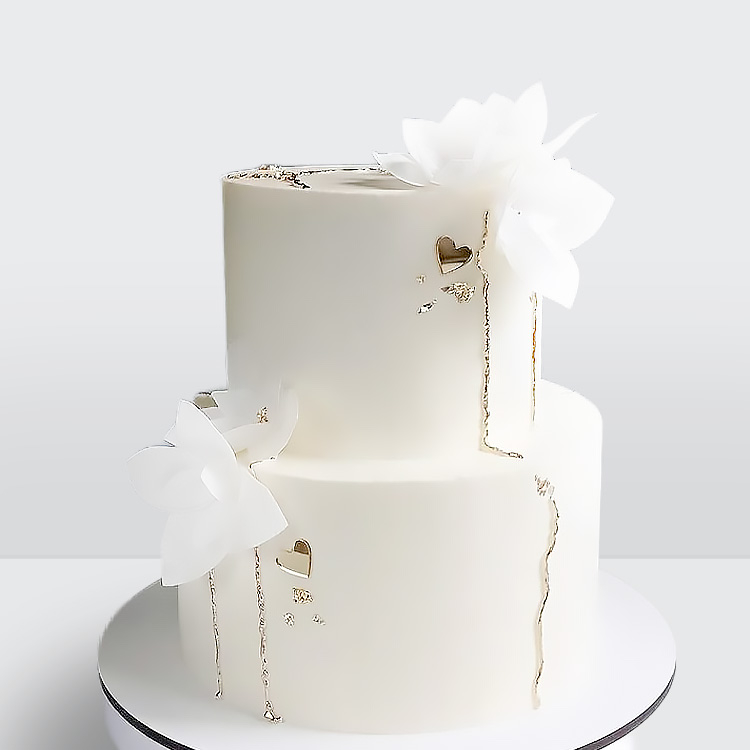 0 Торт белый в стиле минимализм 2 яруса с белыми цветами и золотом № 638