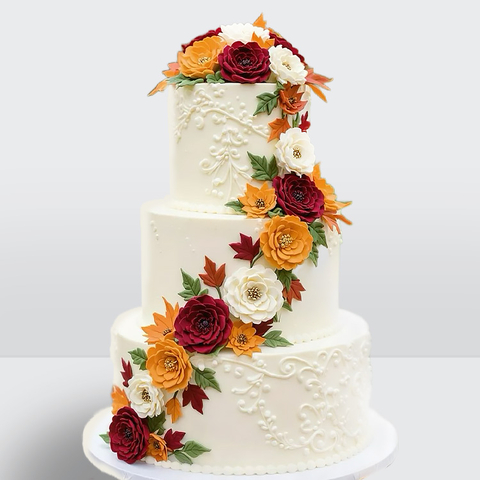 0 Торт осенний 3 яруса с листьями и цветами № 640