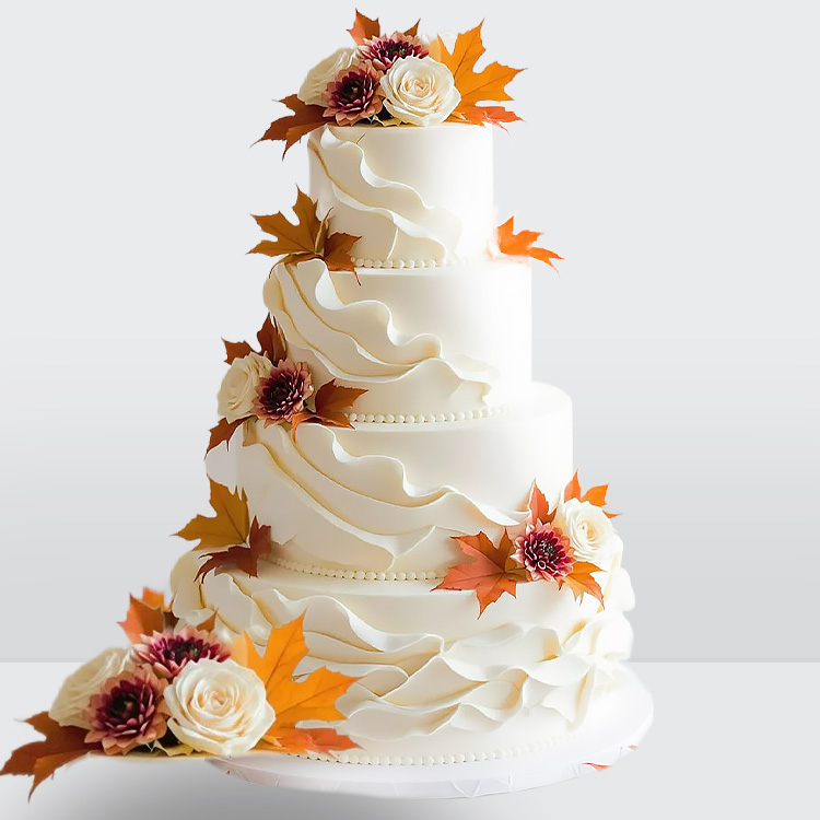 0 Торт осенний 4 яруса с листьями и цветами № 644