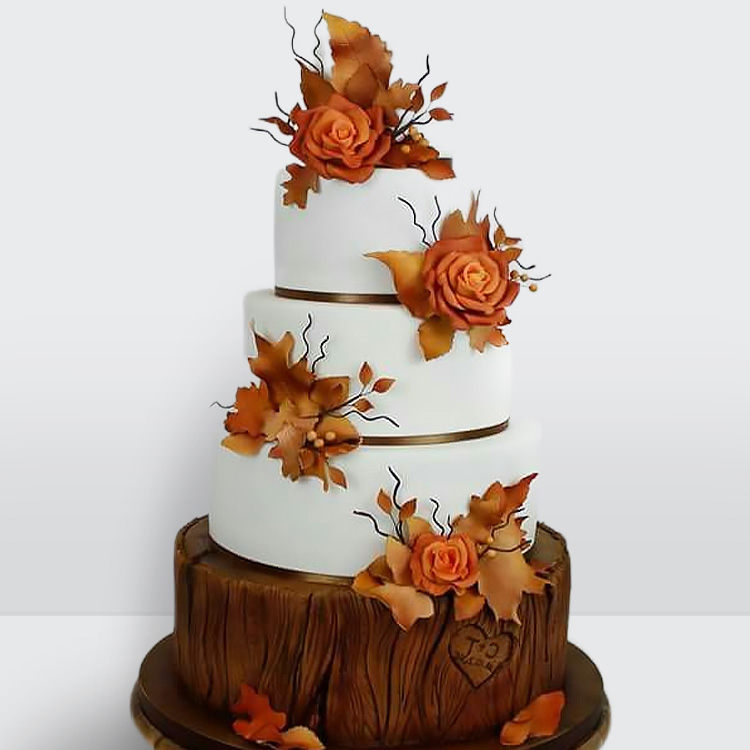 0 Торт осенний 4 яруса с розами на пне № 646