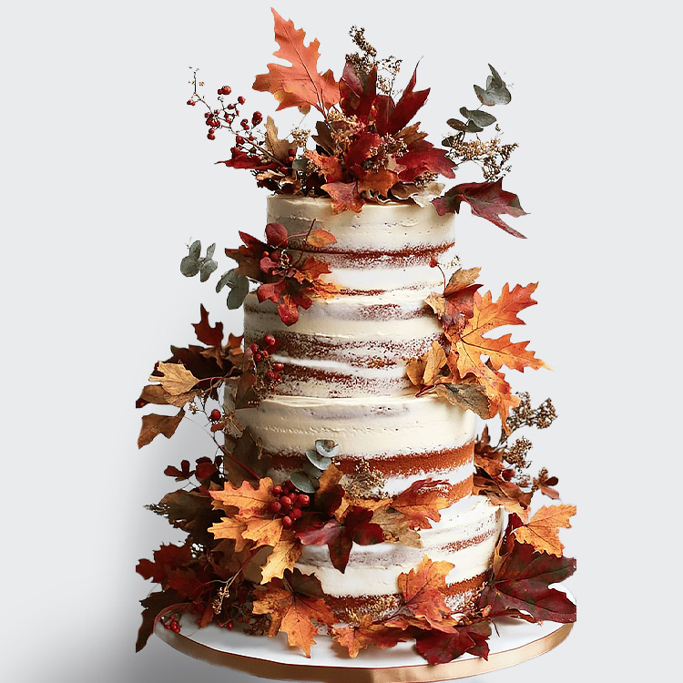 0 Торт осенний 4 яруса с осенними листьями и ягодами рябины в цвете охра № 654