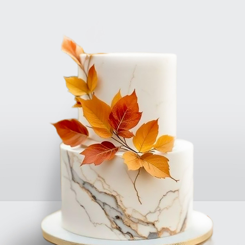 0 Торт в стиле минимализм 2 яруса под мрамор с осенней веткой № 655