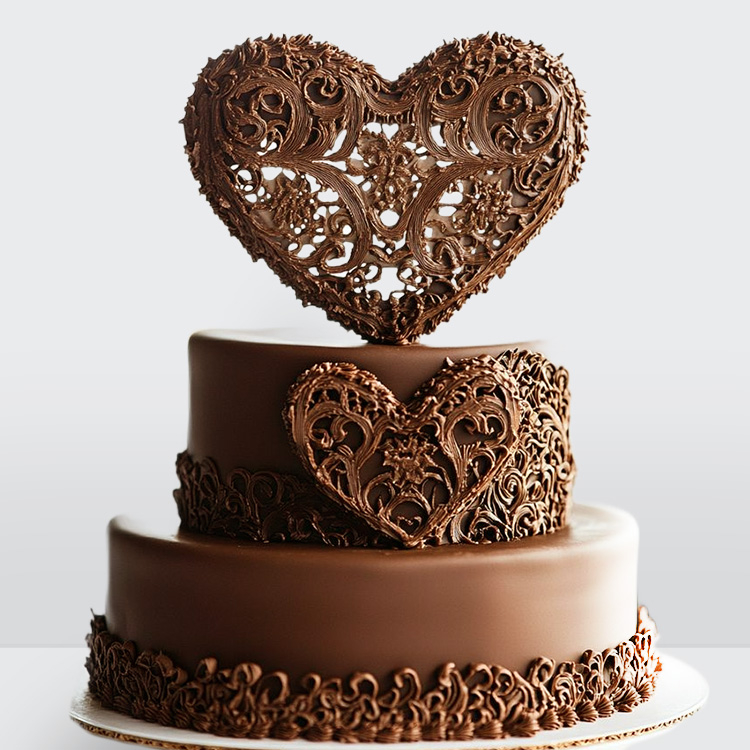 Торт шоколадный 2 яруса с узорами и большим шоколадным сердцем № 659
