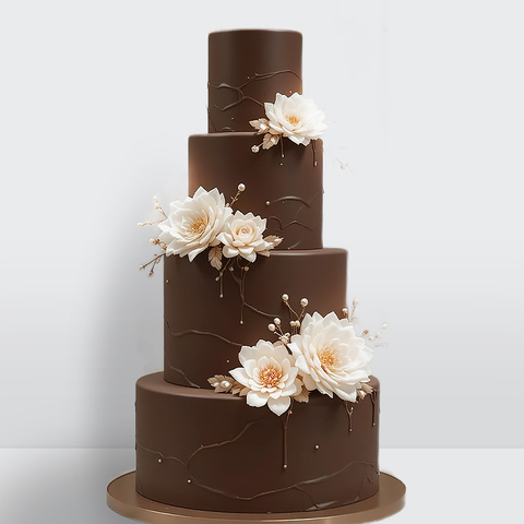 0 Торт шоколадный 4 яруса украшенный белыми цветами № 661