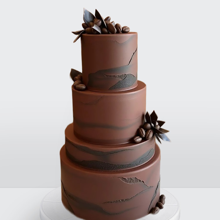 0 Торт шоколадный 4 яруса кофейный в стиле минимализм № 677