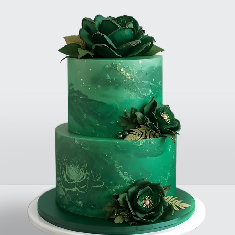 0 Торт в стиле минимализм 2 яруса зеленый под мрамор с розами № 681
