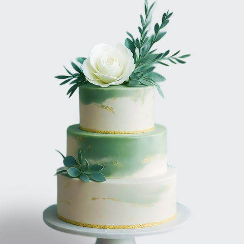 0 Торт 3 яруса в стиле минимализм зеленый с розами и веточками № 687