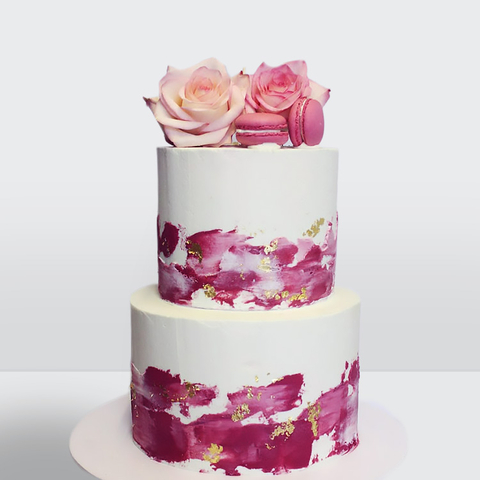 0 Торт 2 яруса в стиле минимализм розовый с золотом и розами № 689