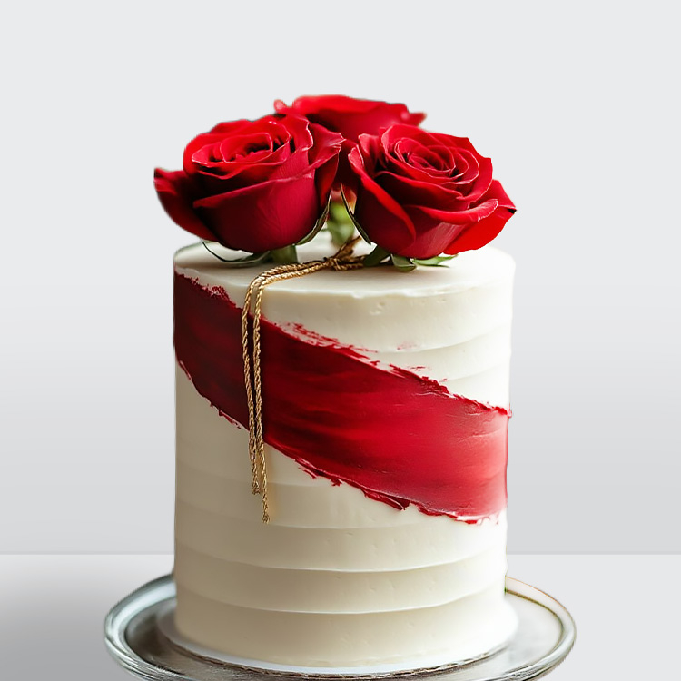 0 Торт в стиле минимализм красный с розами и лентами № 694