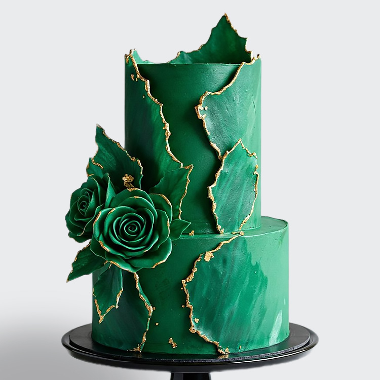 0 Торт под мрамор 2 яруса в стиле минимализм зеленый с розами и золотом № 702