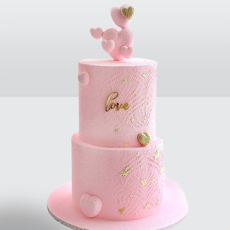 0 Торт 2 яруса розовый велюровый с сердечками и золотой надписью № 707