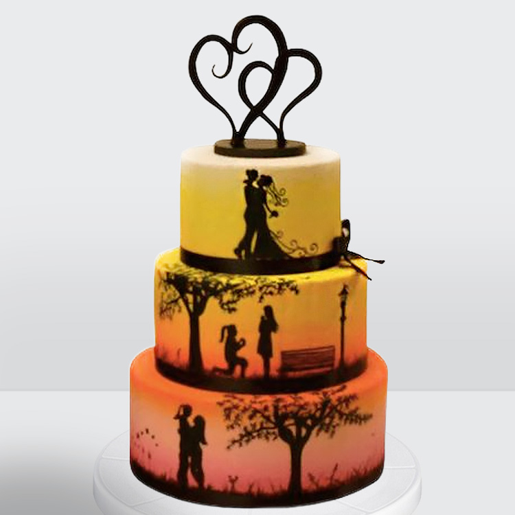 0 Торт влюбленные на закате в парке с двумя сердцами с предложением руки и сердца № 708