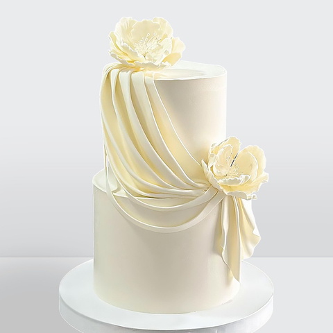 0 Торт 2 яруса в стиле минимализм белый с драпировкой украшенный цветами № 722