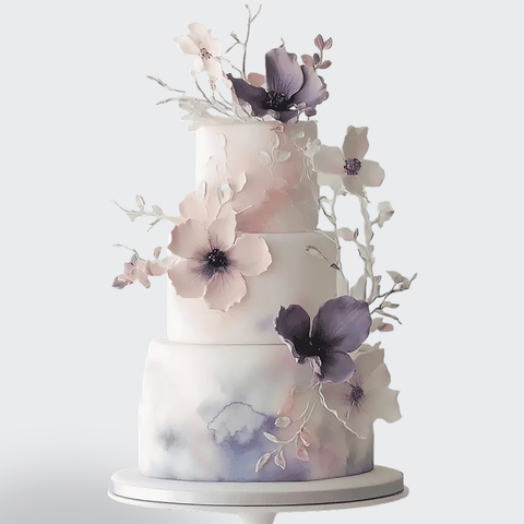 0 Торт 3 яруса в стиле минимализм под мрамор украшенный цветами № 724