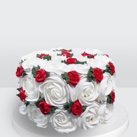 Торт белый с розами из сливок и красных кремовых роз № 727