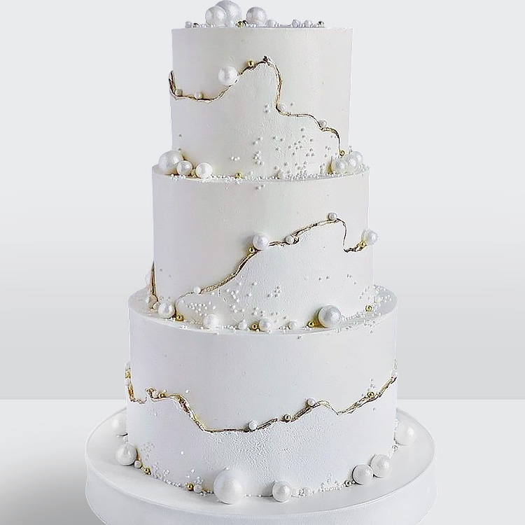 0 Торт 3 яруса в стиле минимализм белый с золотом с жемчужинами № 728