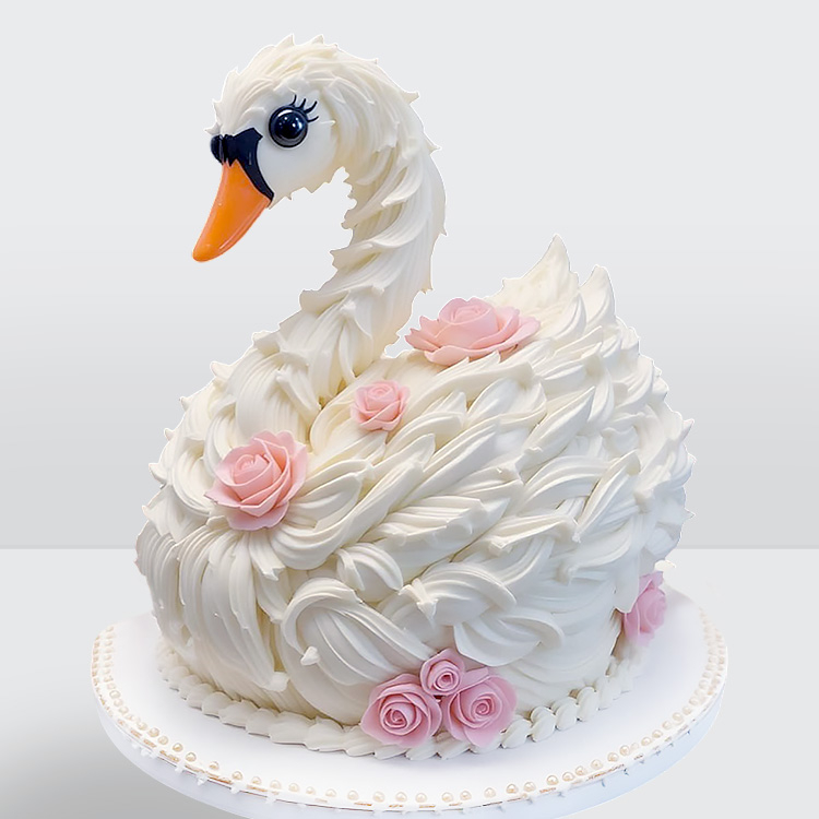 0 Торт в форме белого лебедя с розами № 734