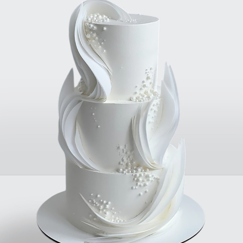 0 Торт 3 яруса в стиле минимализм с бусинами, драпированный рисовой бумагой № 736