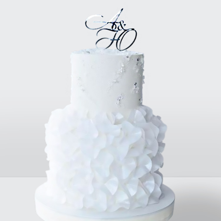 0 Торт 2 яруса, белый с инициалами, кристаллами, задрапированный рисовой бумагой № 738