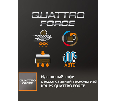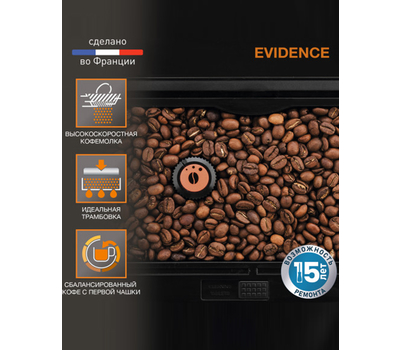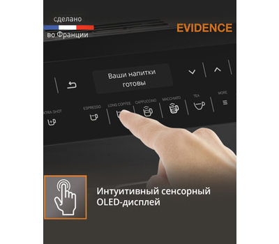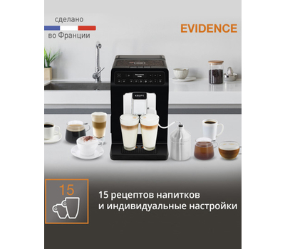 Интуитивное управлениеПростое и интуитивно понятное управление, которое дает вам полный контроль за процессом приготовления, благодаря сенсорной панели с OLED-дисплеем.Идеальный кофе - чашка за чашкойЭксклюзивная технология KRUPS Quattro Force оптимизирует процесс приготовления кофе на всех этапах – от идеального помола до приготовления и очистки, – позволяя каждый раз получать ароматный и насыщенный кофе профессионального качества.Легкая очисткаНе беспокойтесь о регулярном уходе за вашей кофемашиной – система автоматической очистки делает обслуживание простым и быстрым и не требует ручной очистки.Линейка Evidence имеет независимую сертификацию TÜV Rheinland, которая подтверждает, что конструкция и рекомендуемое обслуживание кофемашин гарантируют их чистоту.15 рецептов напитков и индивидуальные настройки15 программ для приготовления совершенных кофейных напитков от эспрессо до капучино. Меняйте объем кофе и молока или усовершенствуйте свой напиток с помощью двух эксклюзивный функций: DARK делает ваш кофе более крепким и ароматным, а EXTRA SHOT добавляет еще одну порцию эспрессо для более насыщенного вкуса2 капучино одним касаниемВы можете использовать контейнер для молока в комплекте или просто опустить трубку капучинатора в пакет с молоком и приготовить одним касанием 2 капучино или латте.Компактный размер для комфортного использованияБлагодаря компактному размеру кофемашина станет прекрасным дополнением даже небольшой кухни.ТЕХНИЧЕСКИЕ ХАРАКТЕРИСТИКИСерия - EvidenceТип - Автоматическая кофемашинаЦвет - черныйМощность - 1450 ВтДавление - 15 барКофемолка - Коническая металлическая кофемолкаКоличество рецептов - 15Приготовление капучино - Автоматическое2 капучино одним касанием - ЕстьЭкран - СенсорныйАвтоматическая очистка - ЕстьПерсонализация - Любимые рецептыКонтейнер для зёрен - 260 гСъемный резервуар для воды - ЕстьОбъем резервуара для воды - 2,3 лРегулировка степени помола - Ручная (3 режима)Управление - СенсорноеИндикация - Включения, готовности к работе, количества воды на чашку, уровня водыОсобенности - Автоматическая очистка молочника, Автоматические программы по уходу, Возможность программирования любимых рецептов, Система бысторого выброса кофе, Система приготовления латте и капучино прямо из пакета с молоком в чашку, Установка жесткости водыДетектор отсутствия воды в резервуаре - ДаЕмкость коллектора для кофейной гущи - 10 штФункция "капучино в одно касание" - ДаСистема подачи молока - Капучино в одно касаниеРецепты - Эспрессо, двойной эспрессо, лунго, двойной лунго, капучино, двойной капучино, латте макиато, двойной латте макиато, зеленый чай, белый чай, травяной чай, ристретто, горячее молоко, доппио, американоКоличество чашек кофе, приготавливаемых одновременно, циклы - 2Количество чашек кофе с добавлением молока, приготавливаемых одновременно, циклы - 2Регулируемый объем воды на чашку - ДаКоличество температурных режимов - 3 штВозможность использования молотого кофе - НетВыбор крепости напитка (кофе) - 3Автоматизированный двойной цикл помола для больших порций (кофе) (220 мл) - ДаДлинный носик сопла подачи - сливной поддон 15,8 смРегулируемое по высоте сопло подачи напитка (кофе) - ДаФункция подачи пара - ДаДетектор накипи - АвтоматическиПрограмма очистки системы подачи молока - АвтоматическиПрограмма очистки для системы пода