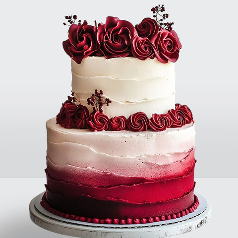 0 Торт 2 яруса с красным градиентом и розами № 740