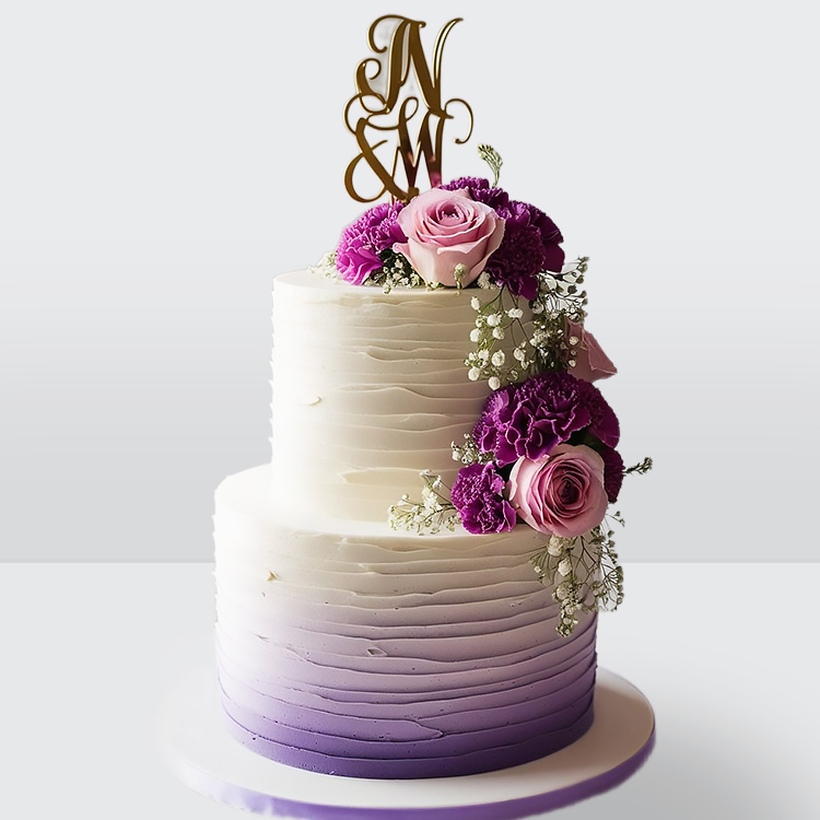 0 Торт 2 яруса с градиентом, с розами и инициалами № 747