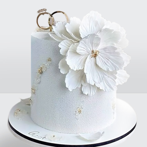 Торт велюровый белый с кольцами и цветком из мастики № 755