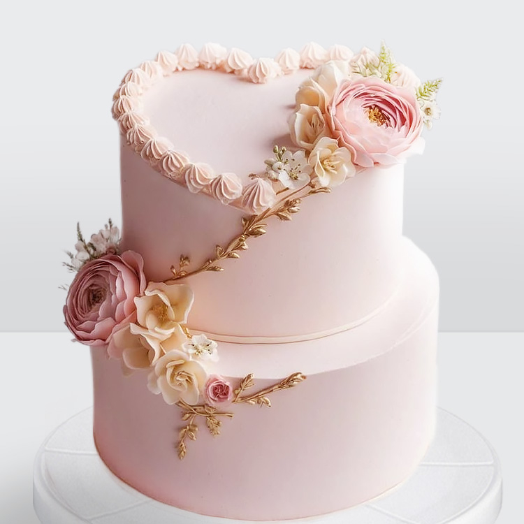 0 Торт 2 яруса розовый в форме сердца с розами № 757