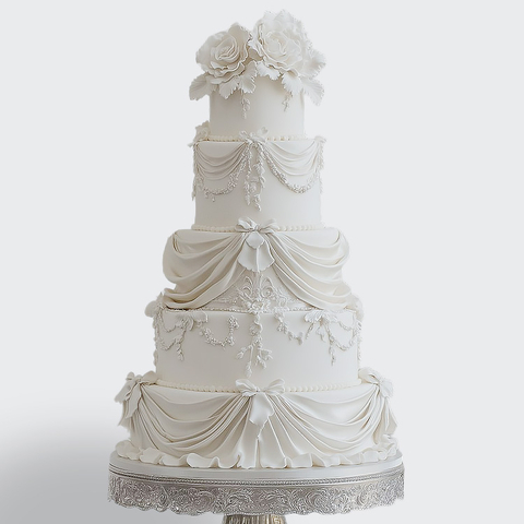 0 Торт 5 ярусов с драпировкой и цветами в ампирском стиле № 763