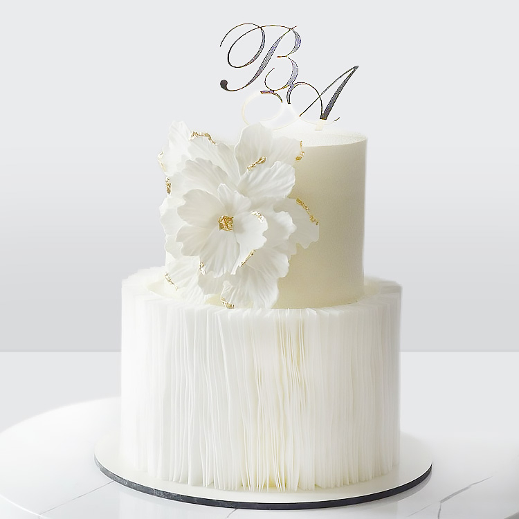 0 Торт с инициалами, цветком и драпировкой из рисовой бумаги № 784