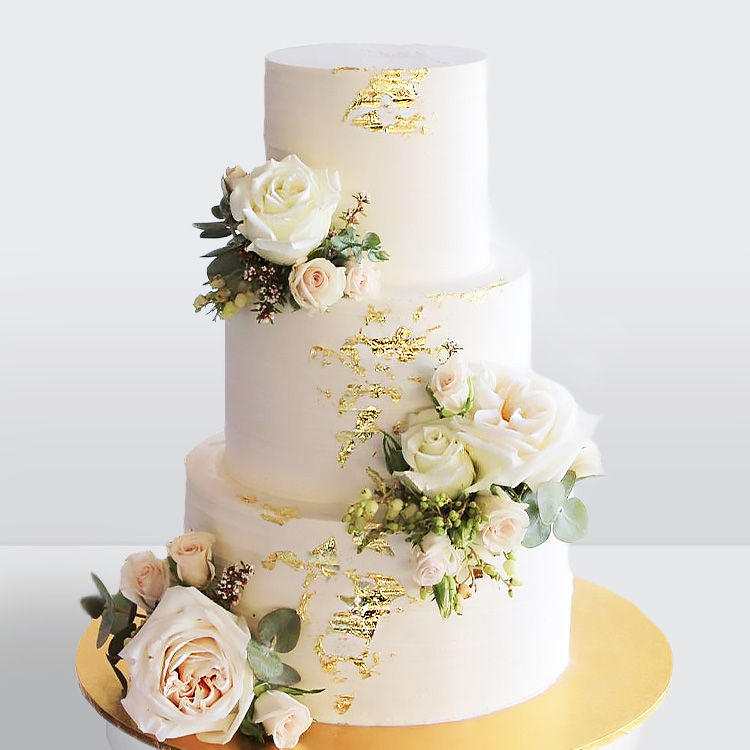 Торт 3 яруса, с золотом и розами № 790