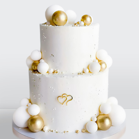 0 Торт 2 яруса с золотыми шарами и сердечками на свадьбу № 792
