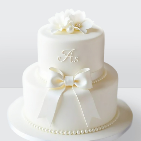 0 Торт 2 яруса, с инициалами, с жемчужинами, бантом и цветами № 804