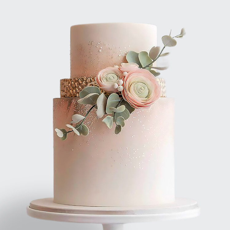 Торт 2 яруса с цветами и золотой окантовкой № 819
